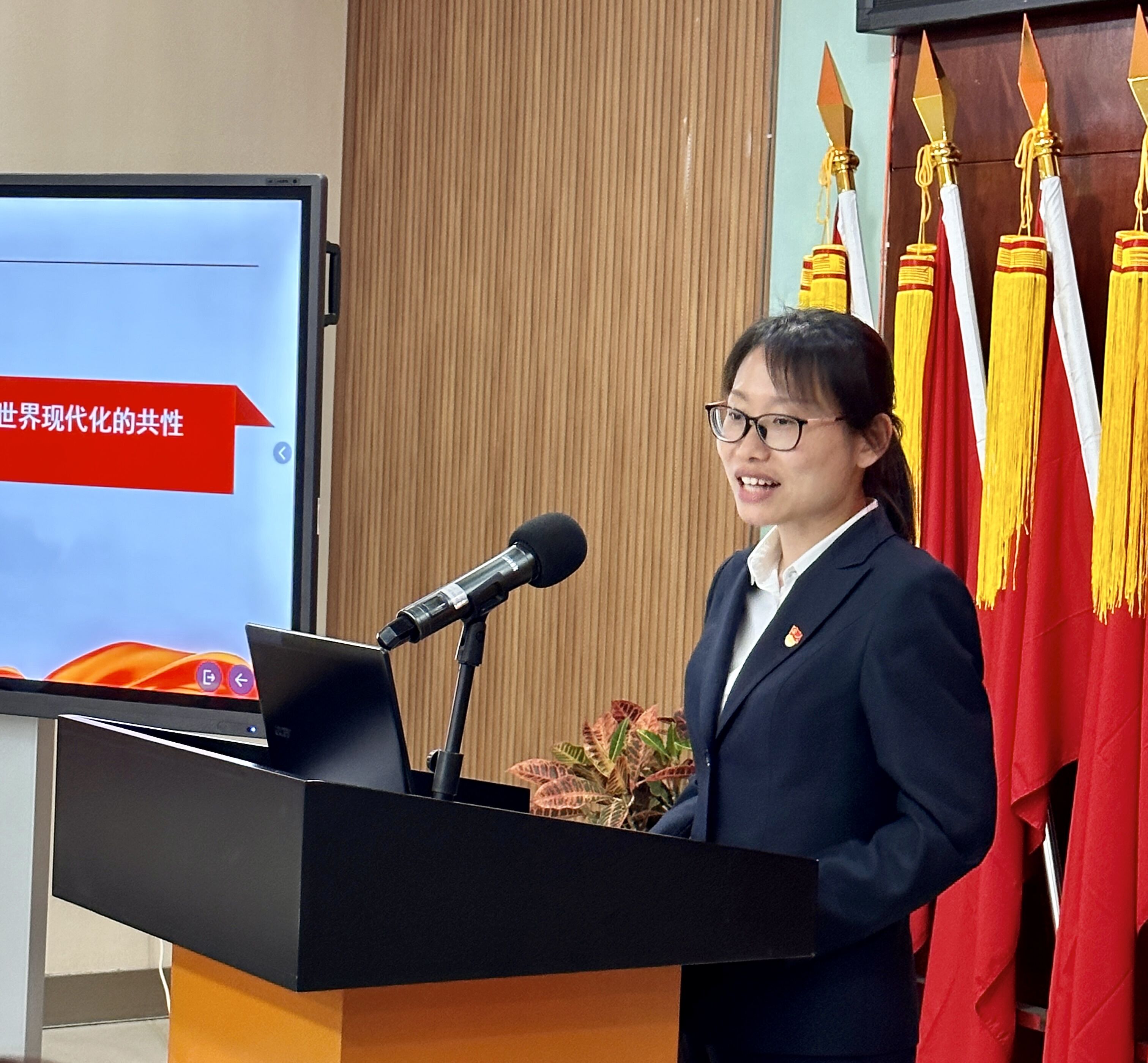 會上,星系列樓宇黨委組織委員邱沙以“深刻領悟新時代新征程黨的中心任務”為切入點對黨的二十大精神進行宣講,詳細闡述了準確把握全面建設社會主義現代化國家和全面建成社會主義現代化強國的統一關系、準確把握中國式現代化與世界現代化的共性和個性的統一關系、準確把握中國式現代化和中國共產黨領導中國特色社會主義的統一關系的深刻內涵和意義。