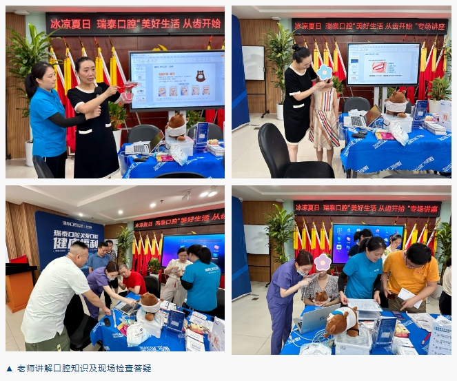 講座現場,公司特邀請到瑞泰口腔醫院的老師為大家現場授課。老師通過PPT、口腔牙齒模型展示、現場互動等方式,生動形象地講解了口腔健康知識和常見口腔疾病,科普了正確的刷牙方法、刷牙工具和口腔清潔理念。