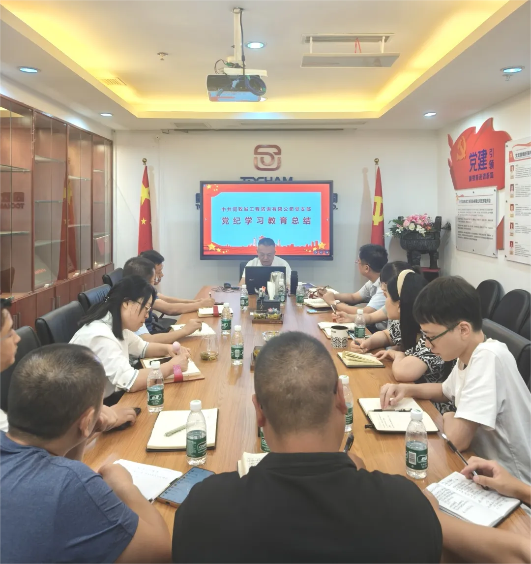 劉書記談到,黨支部從上至下高度重視黨紀學習教育,利用“三會一課”、自學等方式學習《條例》內容,結合工作進行作風自查;通過與市招投標協會黨建共建,共赴貴州參觀紅飄帶(長征數字科技藝術館)、遵義會議會址,重走長征路,感受長征時期的黨紀嚴明;建黨103周年之際,我支部與市招投標協會、江南發展集團、中建五局江南隧道及茶黃路工程項目、圣訊建設公司在項目一線舉辦“七一話初心、黨紀記在心、一線當標兵”主題黨日活動;對于作風不正等現象,及時采取措施,做出整改,以案說法,強化警示教育。