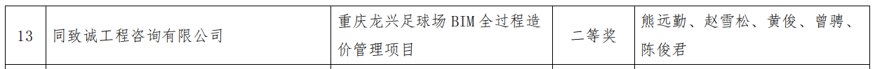 近日,由重慶市建筑業協會聯合重慶市土木建筑學會共同主辦的“重慶市建筑業協會第六屆建設工程BIM大賽”評審結果揭曉,憑借BIM技術與全過程造價咨詢的創新融合,同致誠工程咨詢有限公司參與的“重慶龍興足球場BIM全過程造價管理項目”榮獲綜合BIM技術應用二等獎。