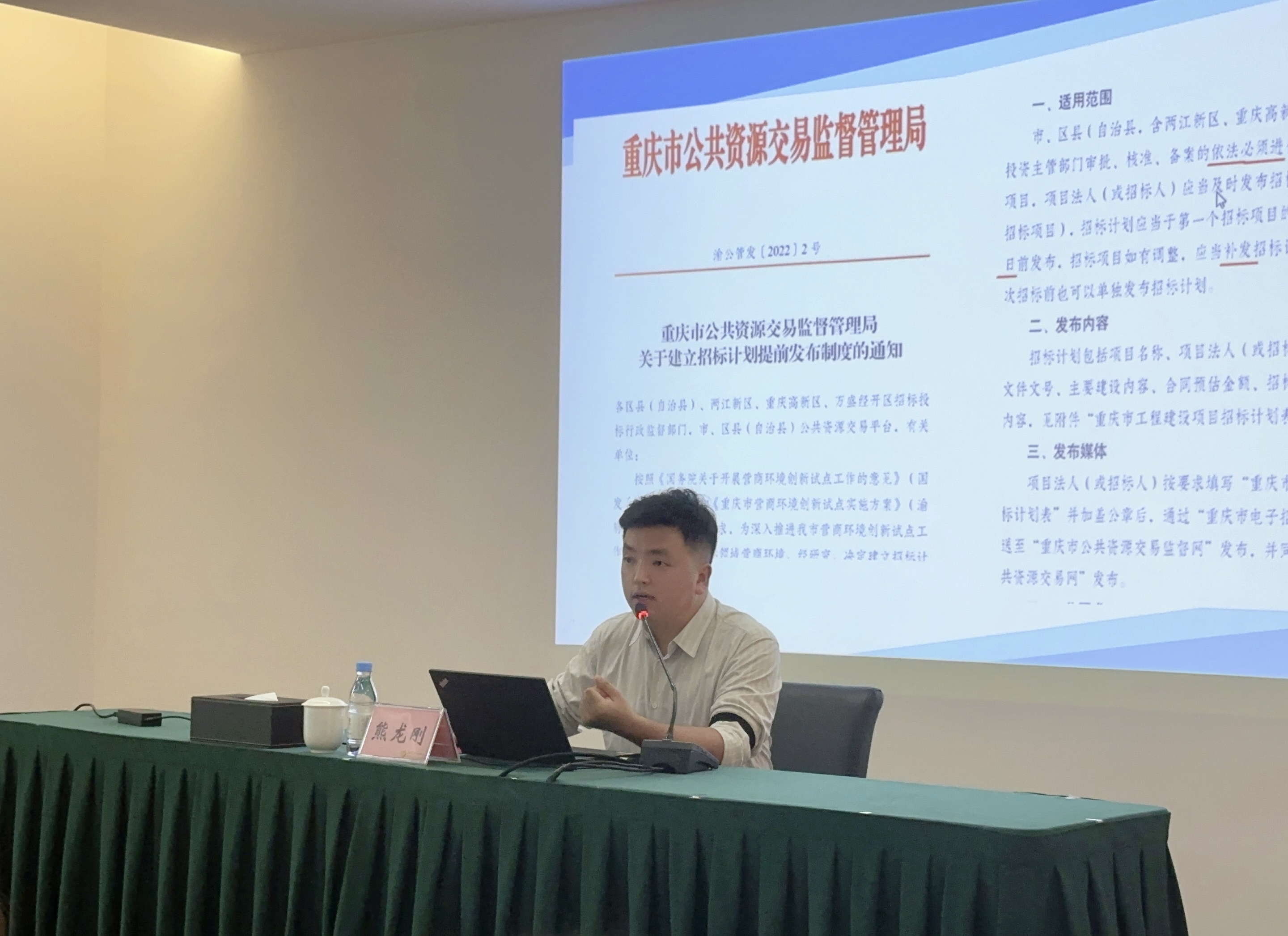7月3日下午,同致誠工程咨詢有限公司受重慶市公共資源交易中心邀請,為其提供工程招標流程及實操專題培訓。為達到培訓效果,公司尤為重視,招標代理部用心準備,安排具有十余年招標代理從業經驗的熊龍剛經理分享實操經驗。
