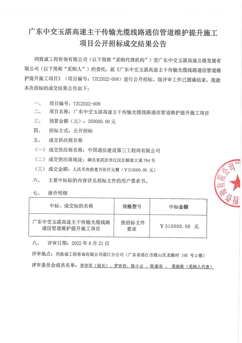 廣東中交玉湛高速主干傳輸光纜線路通信管道維護(hù)提升施工項目