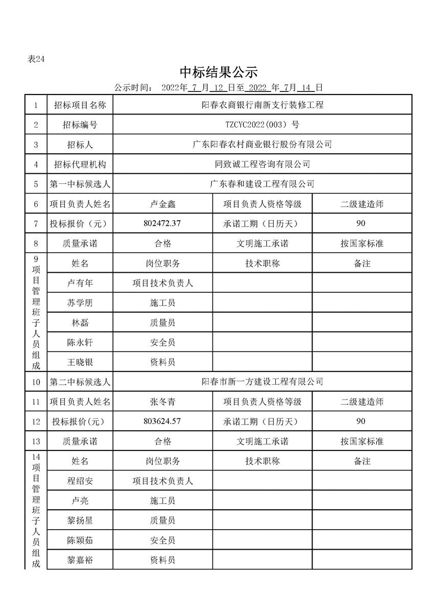 中標公示