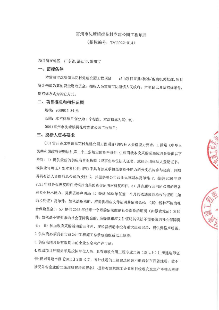 本雷州市沈塘鎮揖花村黨建公園工程項目