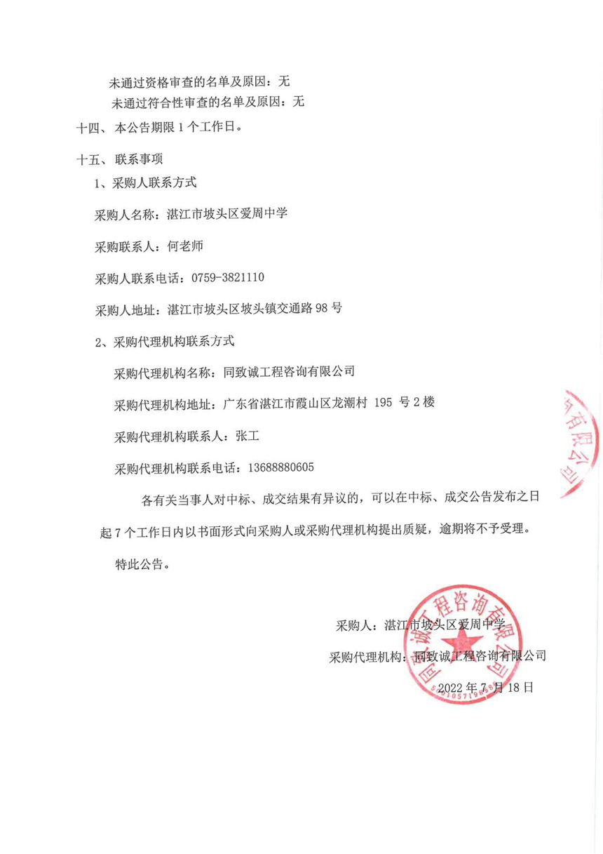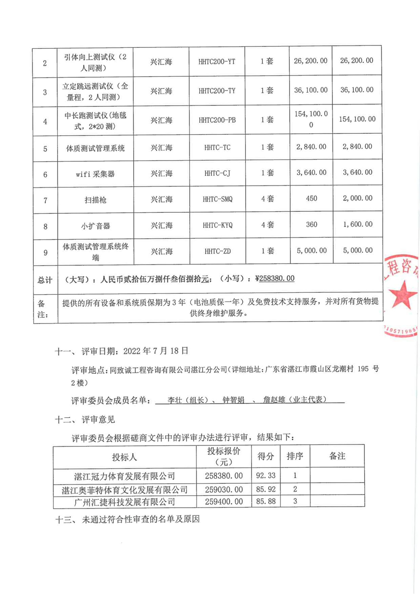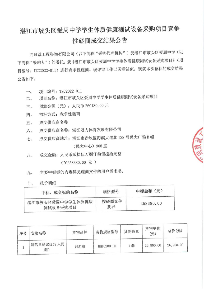湛江市披頭區愛周中學學生體質健康測試設備采購項目