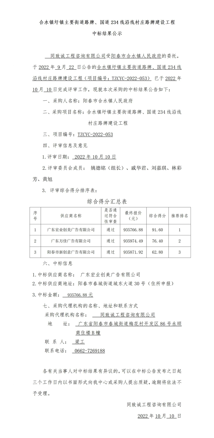 合水鎮圩鎮主要街道路牌、國道234線沿線村莊路牌建設工程