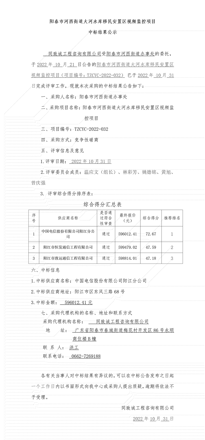 陽春市河西街道大河水庫移民安置區視頻監控項目