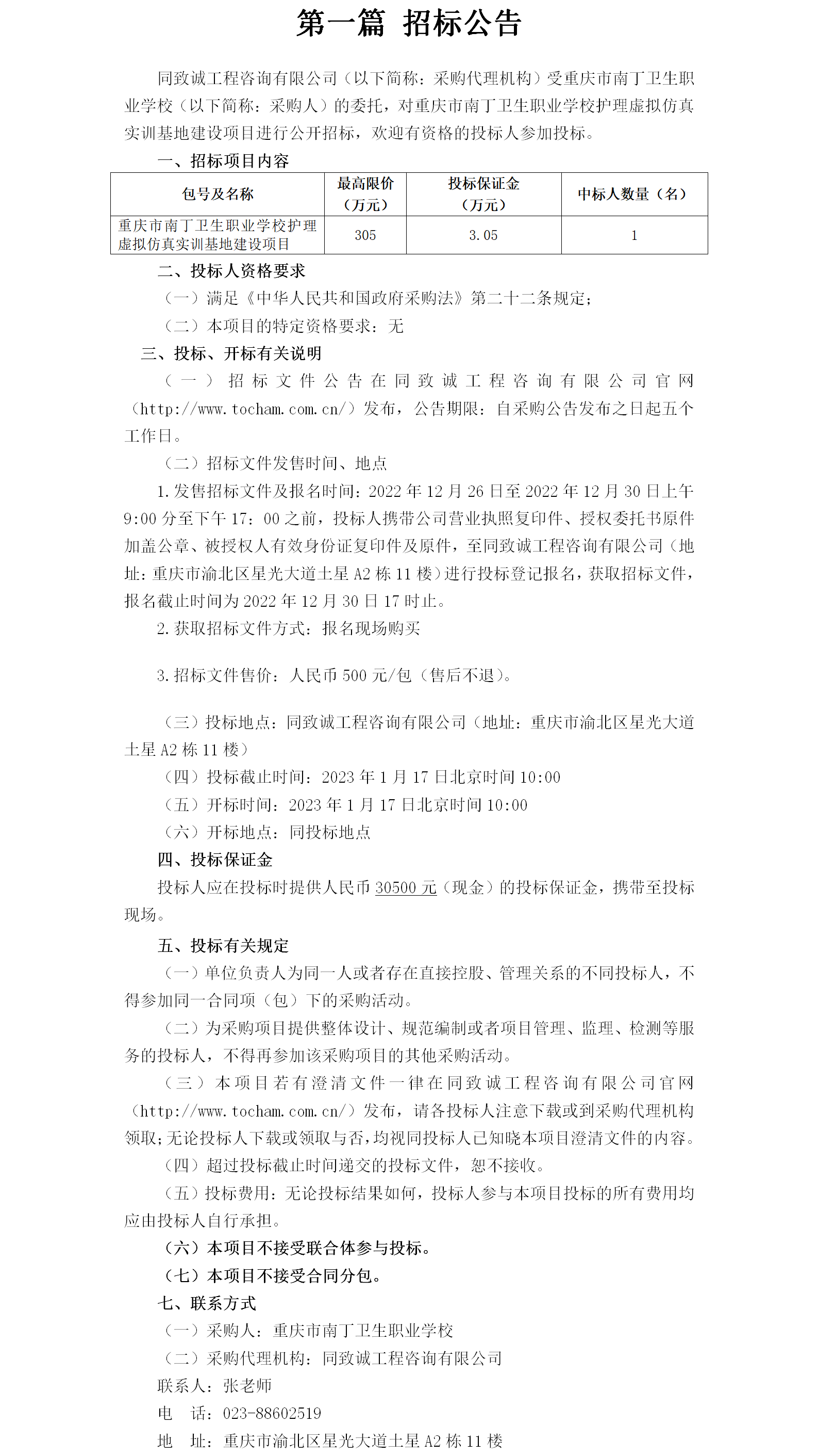 重慶市南丁衛生職業學校護理虛擬仿真實訓基地建設項目