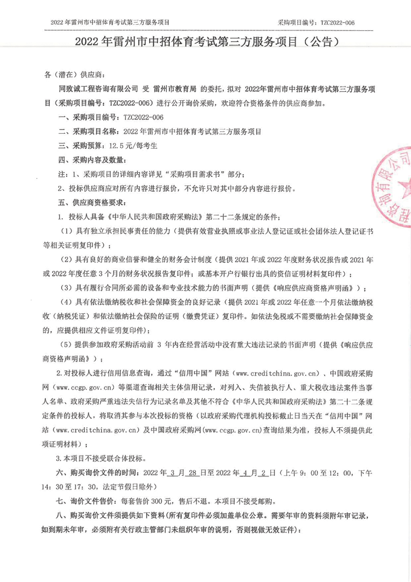 2022年雷州市中招體育考試第三方服務(wù)項(xiàng)目