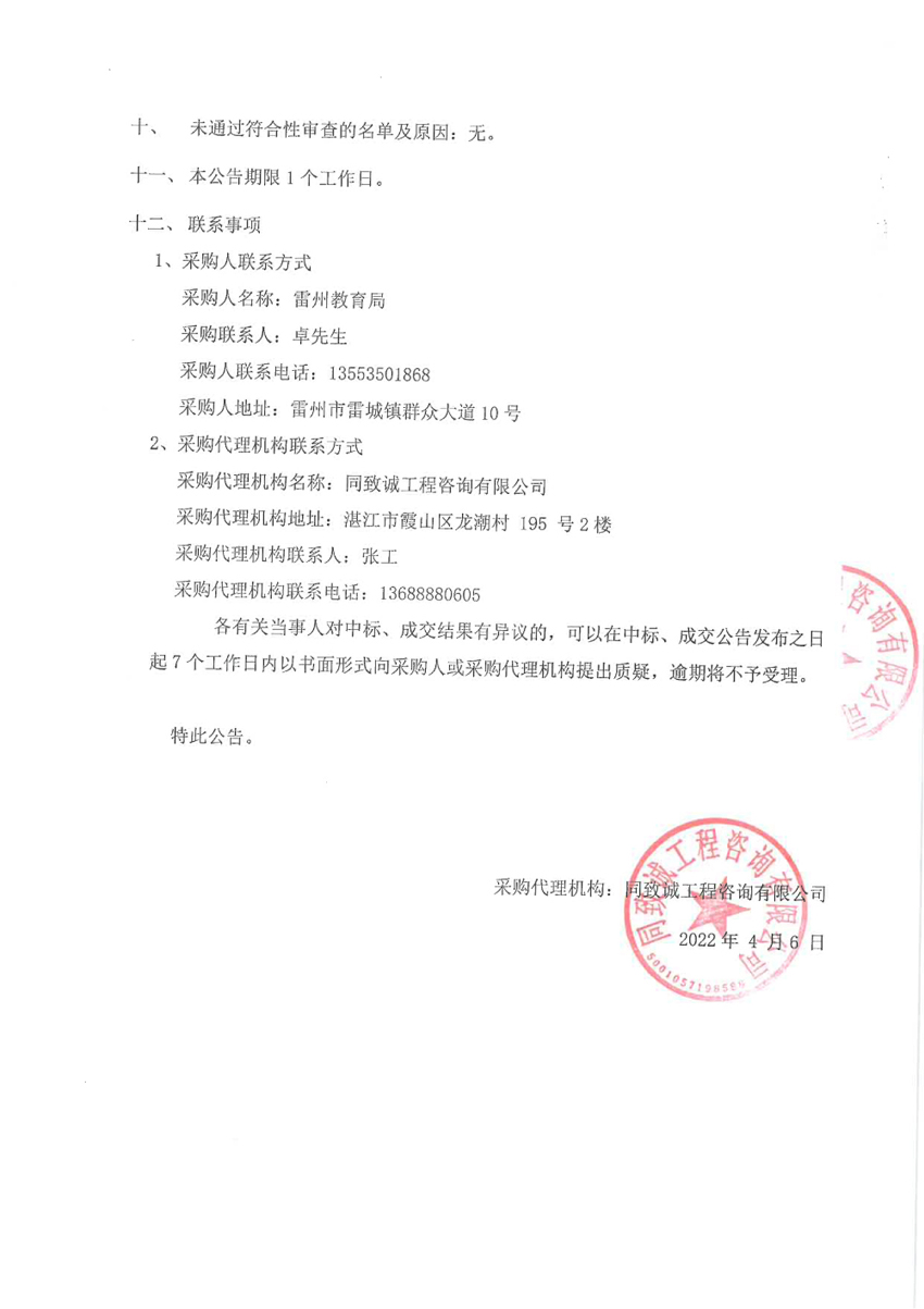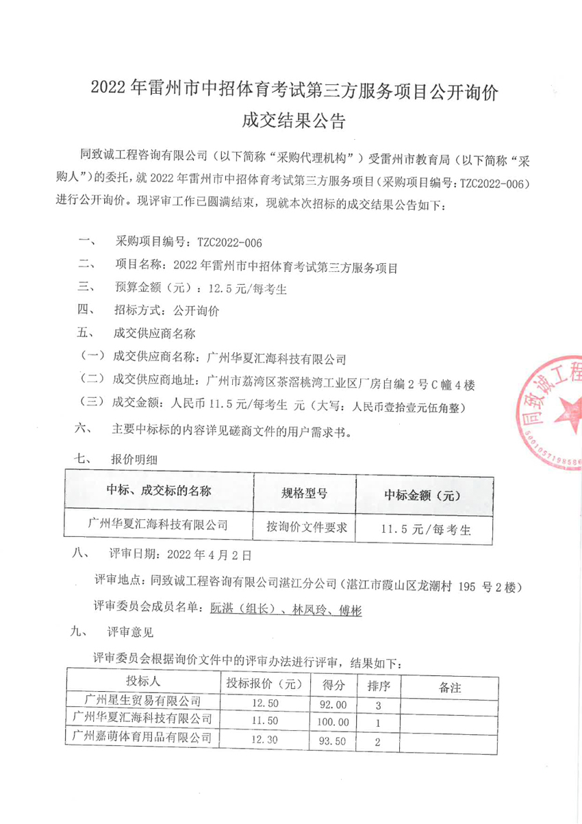 2022年雷州市中招體育考試第三方服義項(xiàng)目中標(biāo)公示